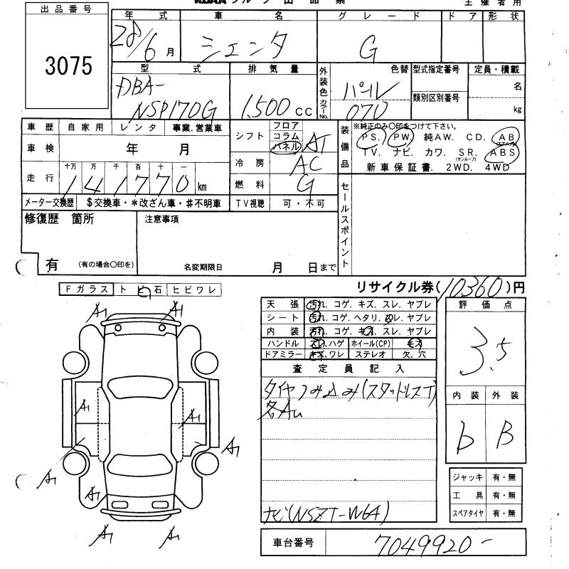 TOYOTA SIENTA G - лот 3075