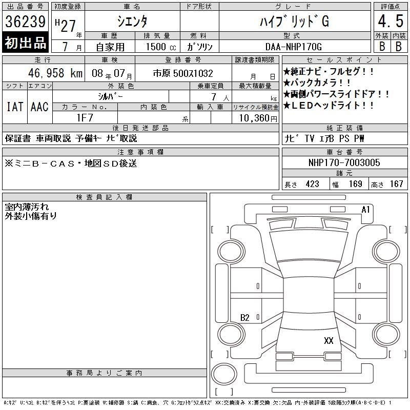 TOYOTA SIENTA HYBRID G - лот 36239