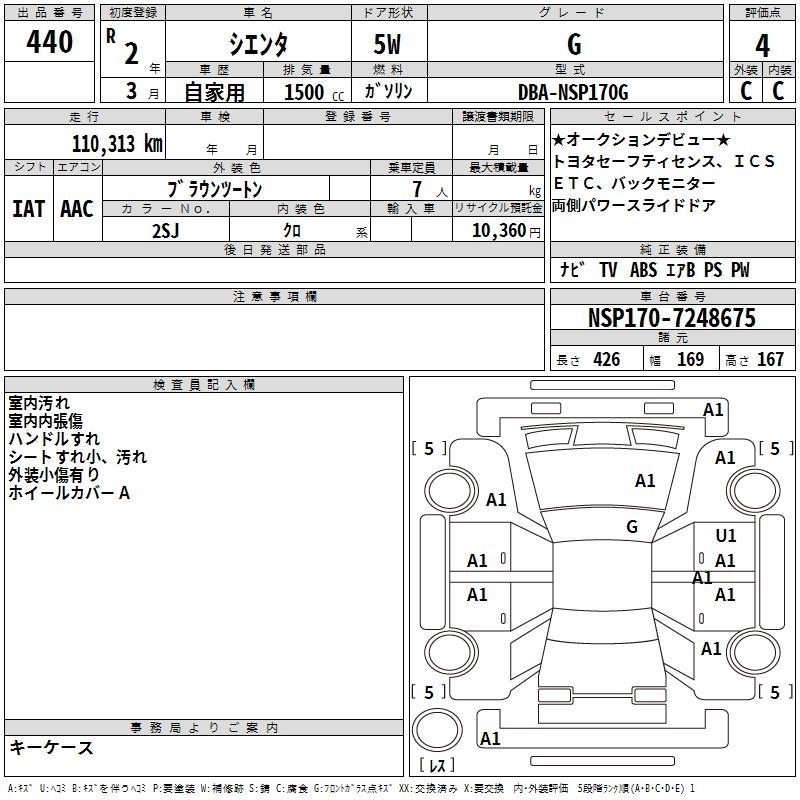 TOYOTA SIENTA G - лот 440