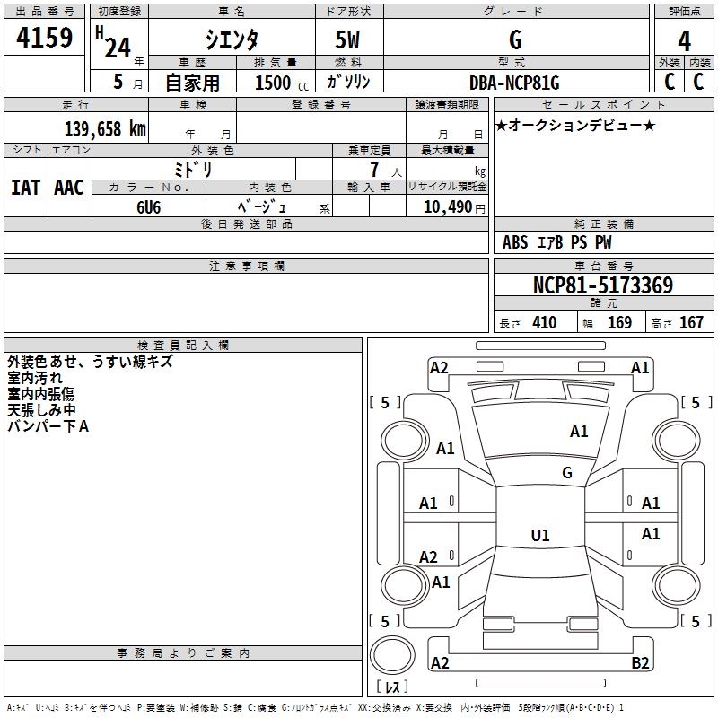TOYOTA SIENTA G - лот 4159