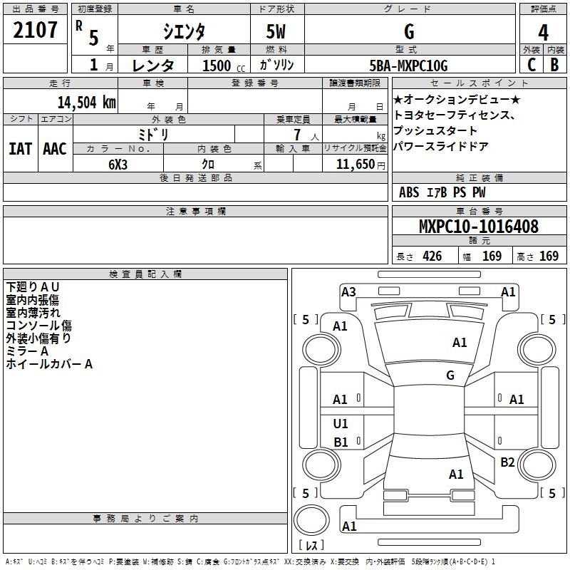 TOYOTA SIENTA G - лот 2107