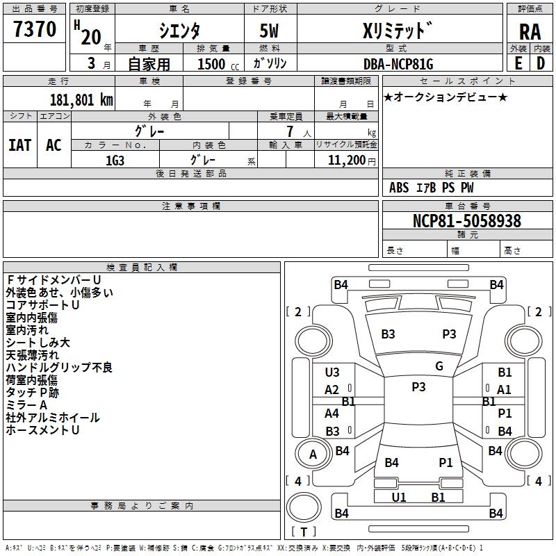 TOYOTA SIENTA X LIMITED - лот 7370