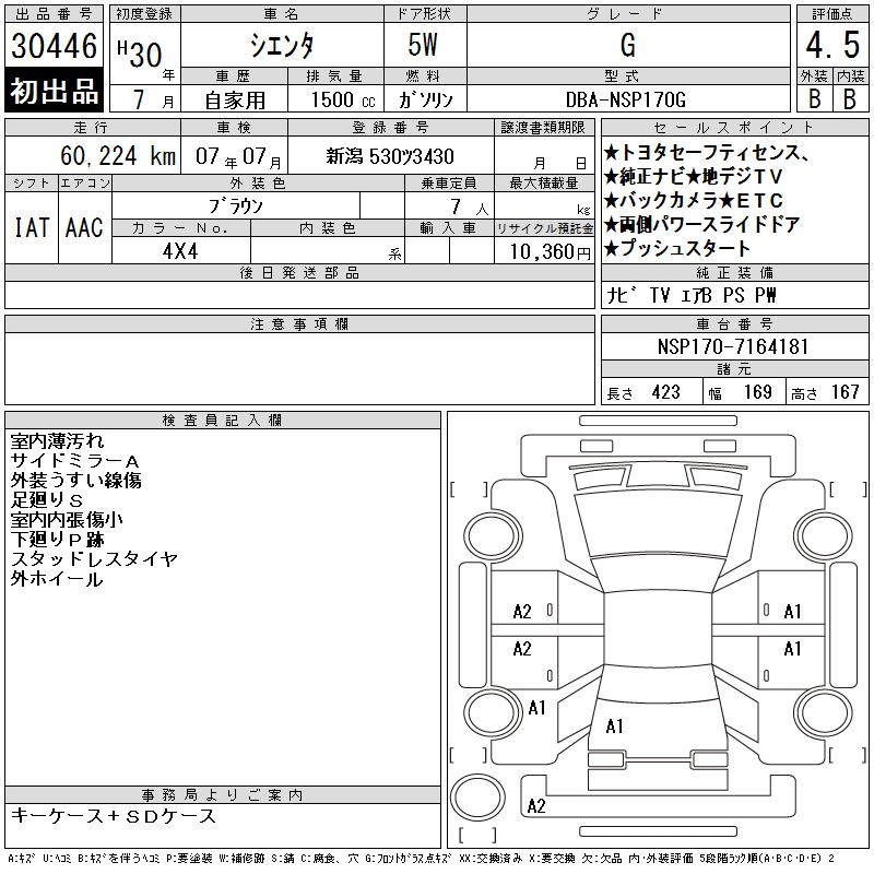 TOYOTA SIENTA G - лот 30446