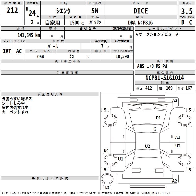 TOYOTA SIENTA DICE - лот 212