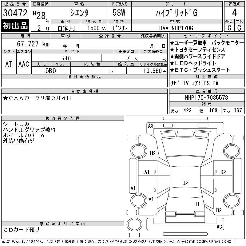 TOYOTA SIENTA HYBRID G - лот 30472