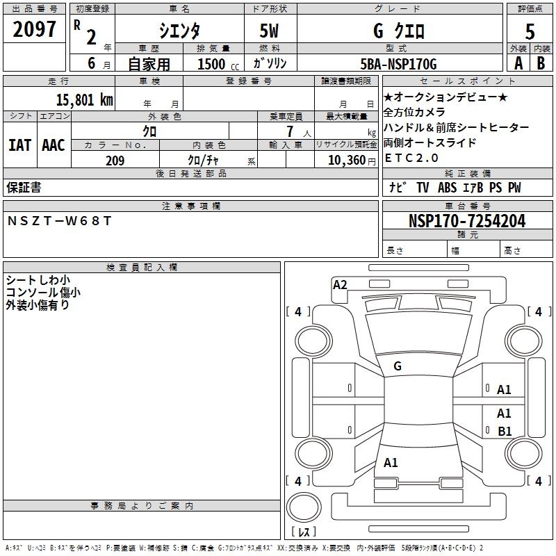 TOYOTA SIENTA GKERO - лот 2097