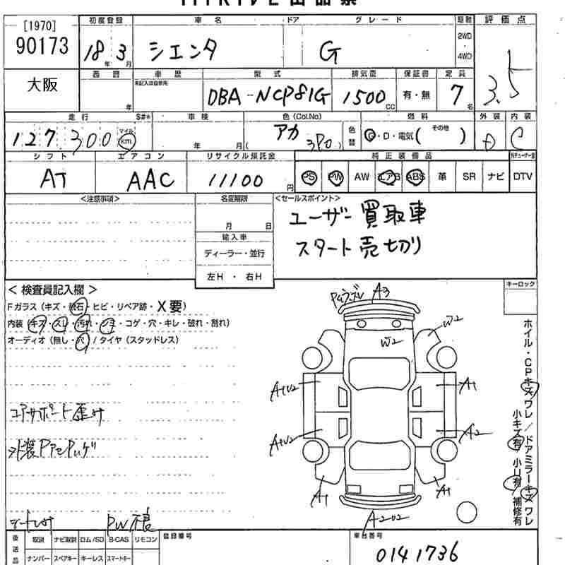 TOYOTA SIENTA G - лот 90173