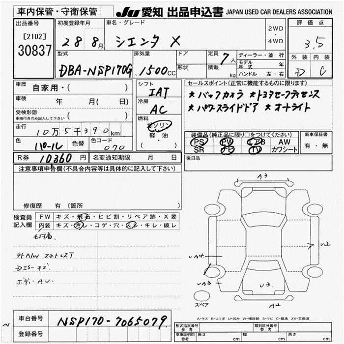 TOYOTA SIENTA X - лот 30837