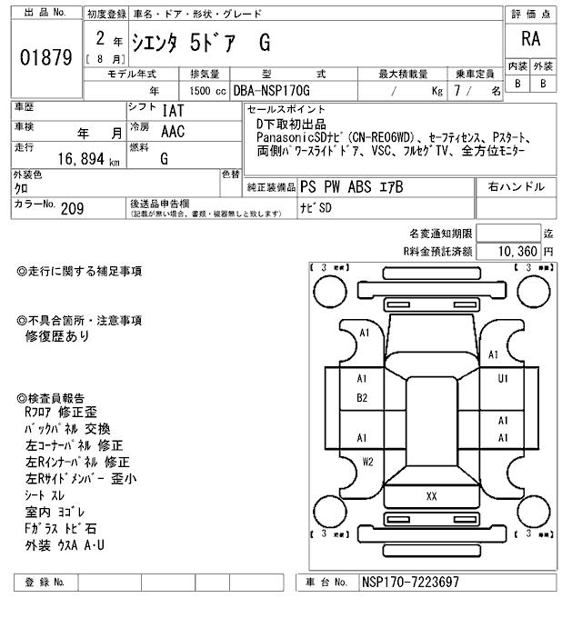 TOYOTA SIENTA G - лот 1879