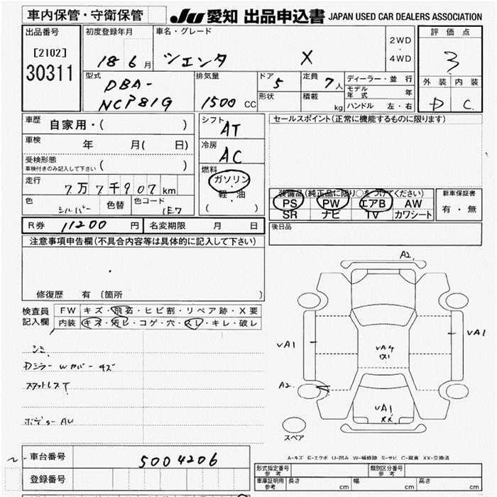 TOYOTA SIENTA X - лот 30311
