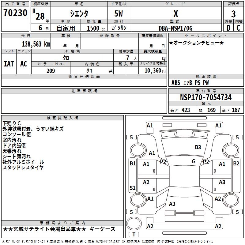 TOYOTA SIENTA X - лот 70230