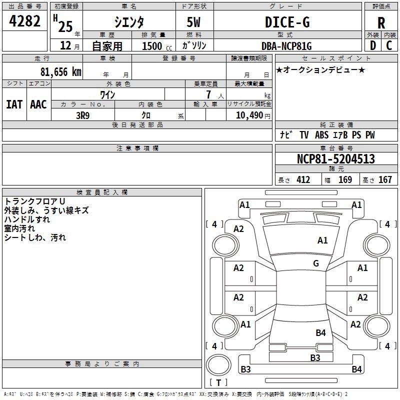 TOYOTA SIENTA DICE-G - лот 4282