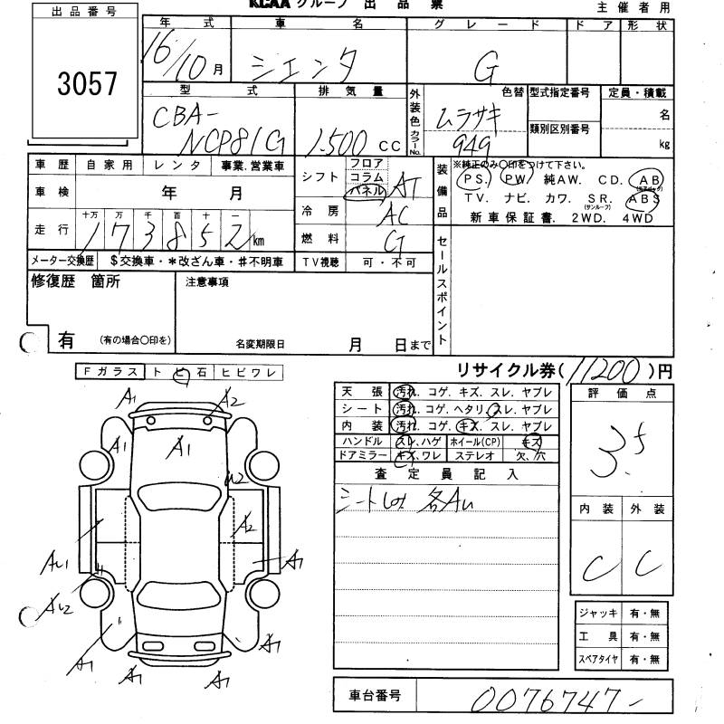 TOYOTA SIENTA G - лот 3057