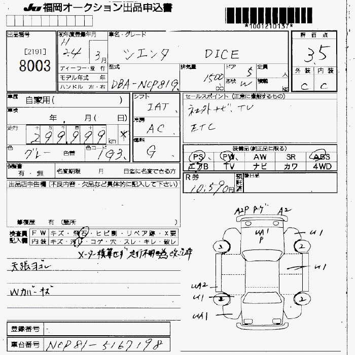 TOYOTA SIENTA DICE - лот 8003