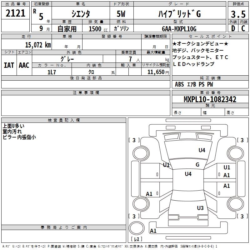 TOYOTA SIENTA HYBRID G - лот 2121