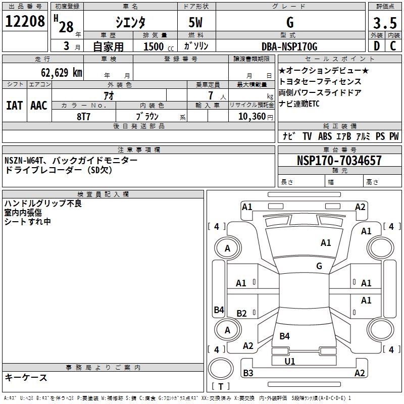 TOYOTA SIENTA G - лот 12208