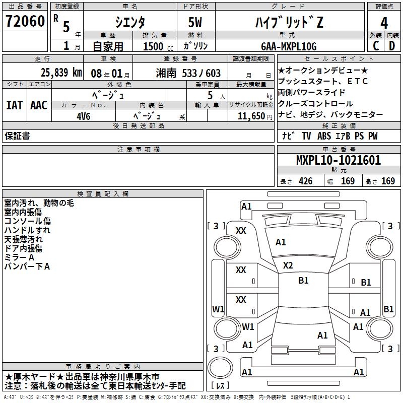 TOYOTA SIENTA HYBRID Z - лот 72060