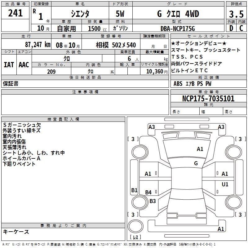 TOYOTA SIENTA GKERO4WD - лот 241