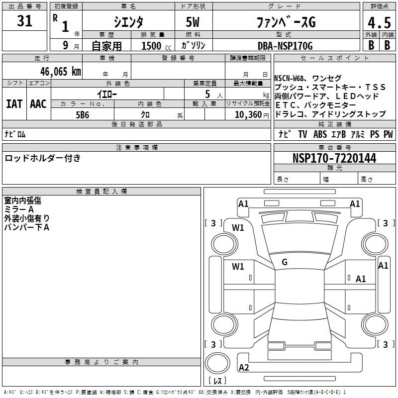 TOYOTA SIENTA FAN BASE G - лот 31