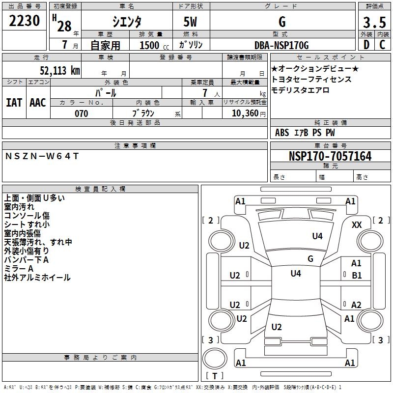 TOYOTA SIENTA G - лот 2230