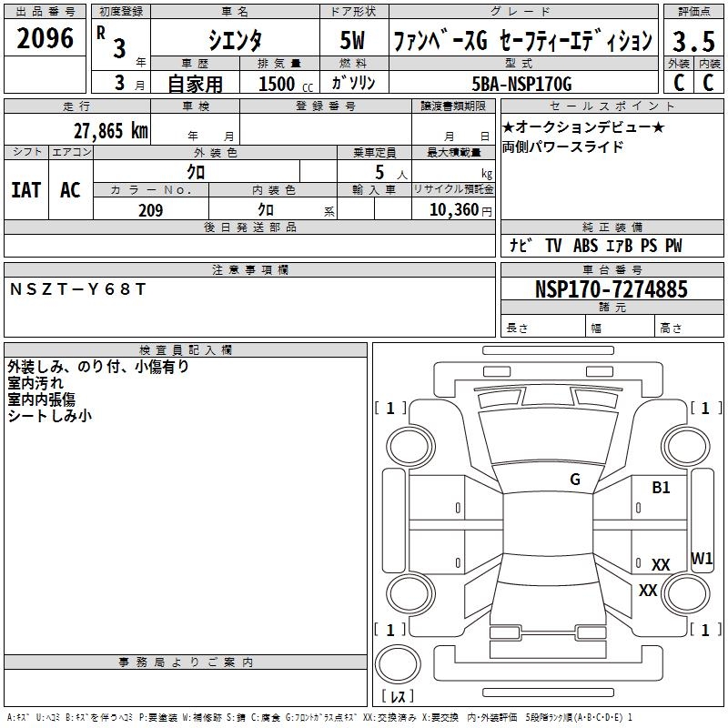 TOYOTA SIENTA FAN BASE G SAFETY -ED - лот 2096