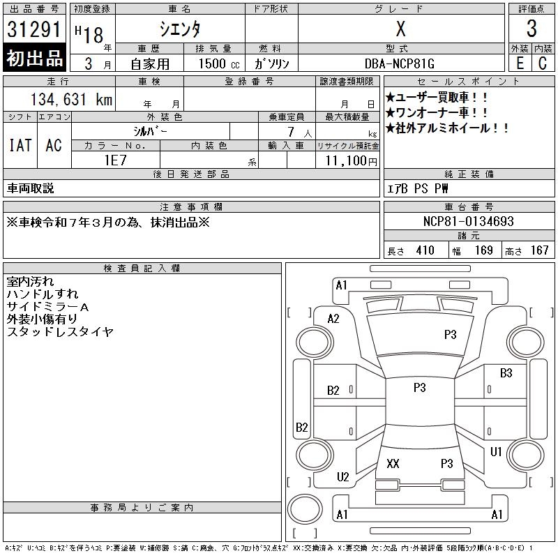 TOYOTA SIENTA X - лот 31291