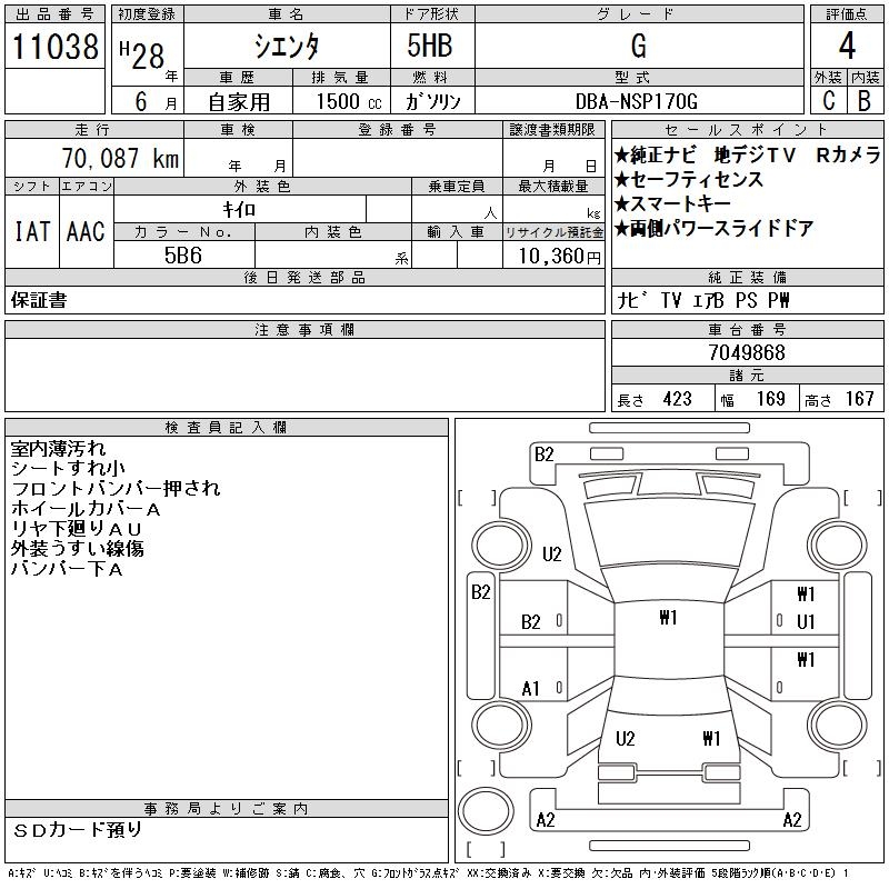 TOYOTA SIENTA G - лот 11038