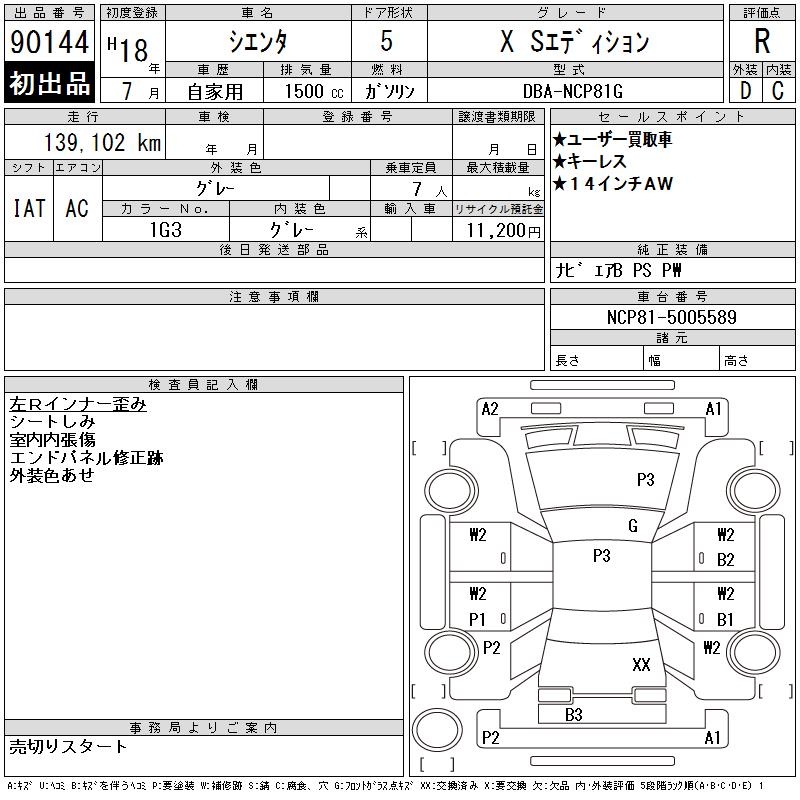 TOYOTA SIENTA X S EDITION - лот 90144