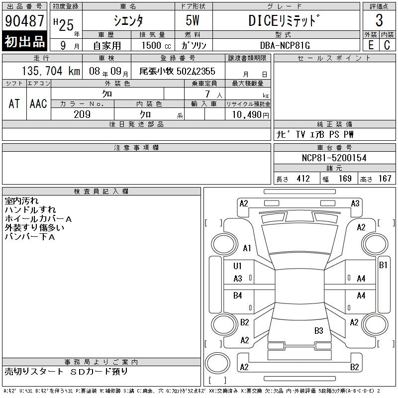 TOYOTA SIENTA DICE LIMITED - лот 90487