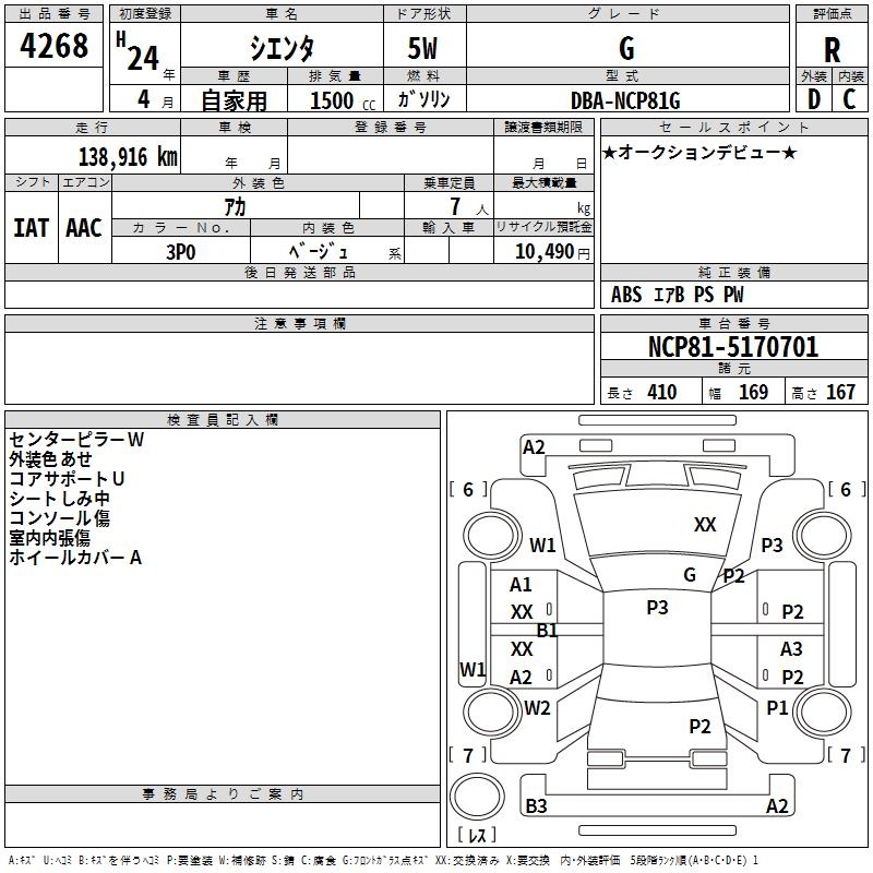 TOYOTA SIENTA G - лот 4268