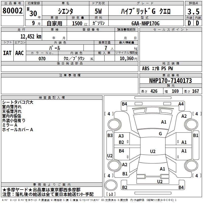 TOYOTA SIENTA HYBRID GKERO - лот 80002