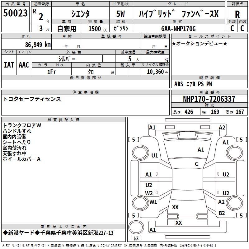 TOYOTA SIENTA HYBRID FAN BASE X - лот 50023