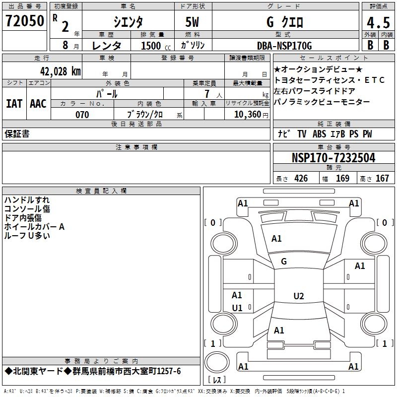 TOYOTA SIENTA GKERO - лот 72050