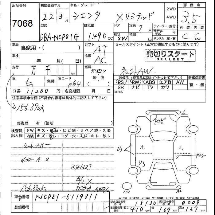 TOYOTA SIENTA X LTD - лот 7068