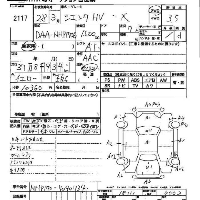 TOYOTA SIENTA HV X - лот 2117