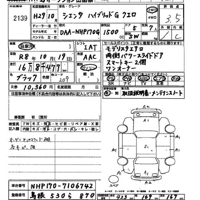 TOYOTA SIENTA HV GKERO - лот 2139