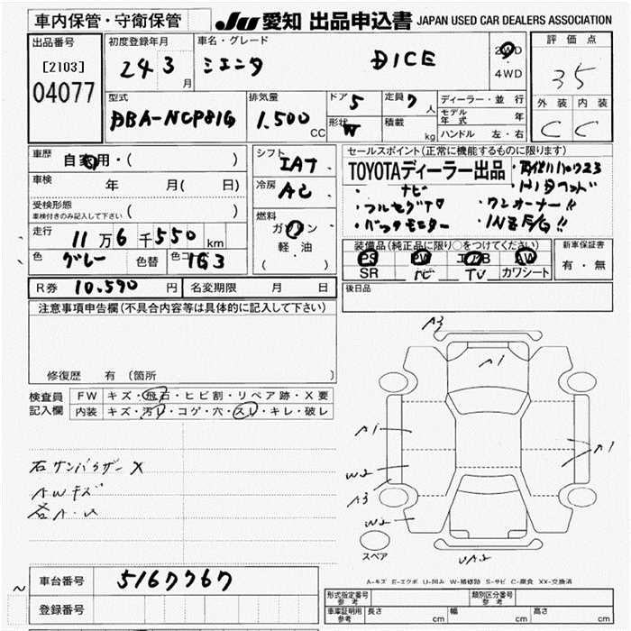 TOYOTA SIENTA DICE - лот 4077