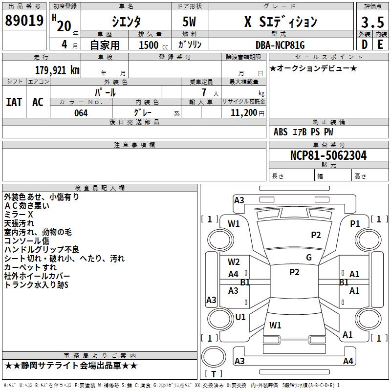 TOYOTA SIENTA X S EDITION - лот 89019