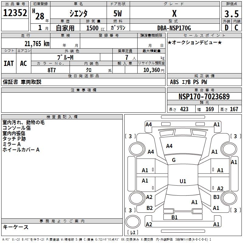 TOYOTA SIENTA X - лот 12352