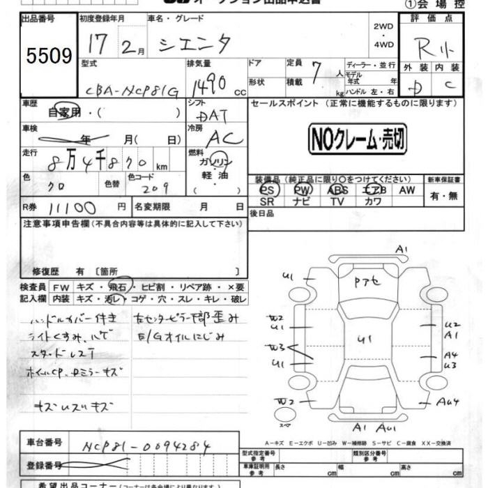 TOYOTA SIENTA - лот 5509