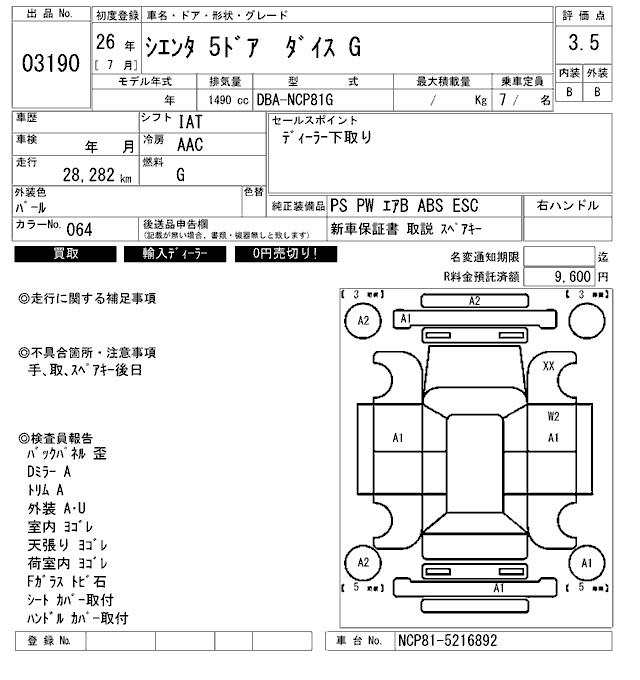 TOYOTA SIENTA DICE G - лот 3190