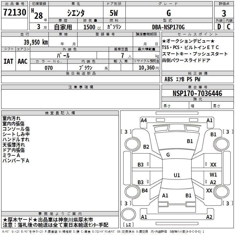 TOYOTA SIENTA G - лот 72130