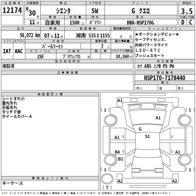 TOYOTA SIENTA GKERO - лот 12174
