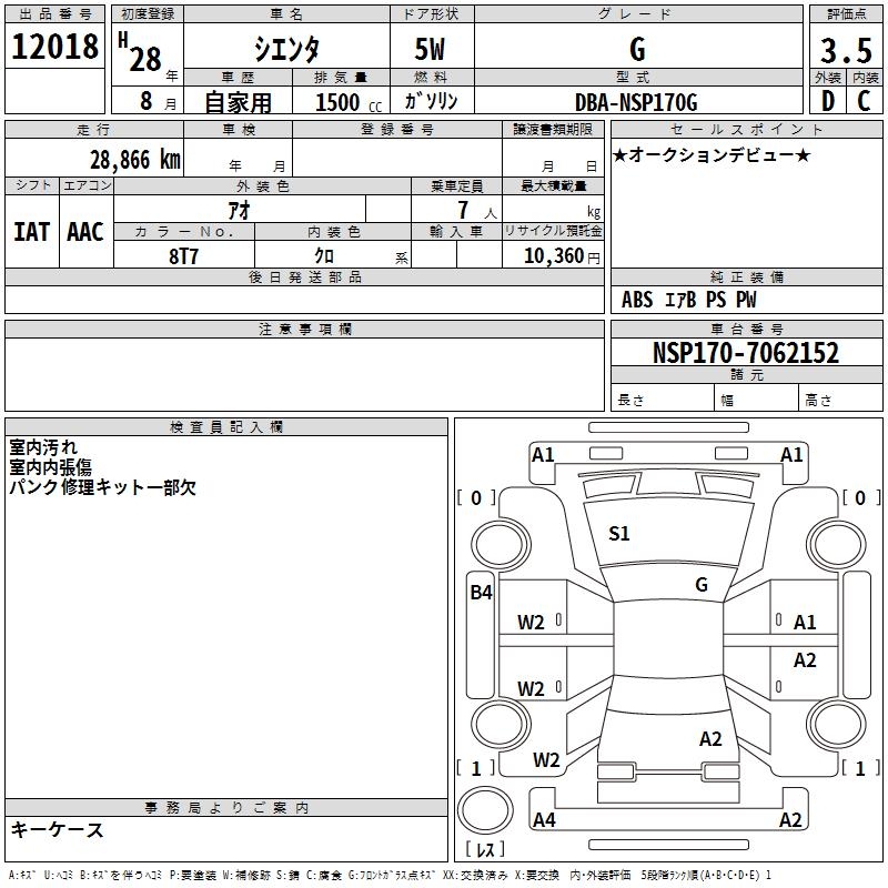 TOYOTA SIENTA G - лот 12018