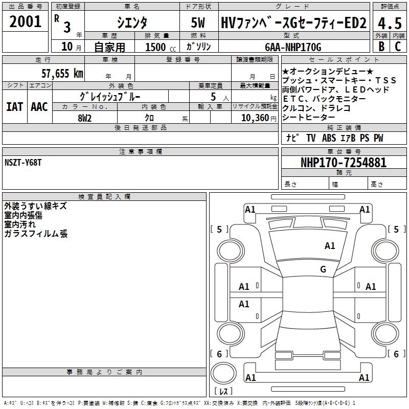 TOYOTA SIENTA HV FAN BASE G SAFETY -ED2 - лот 2001
