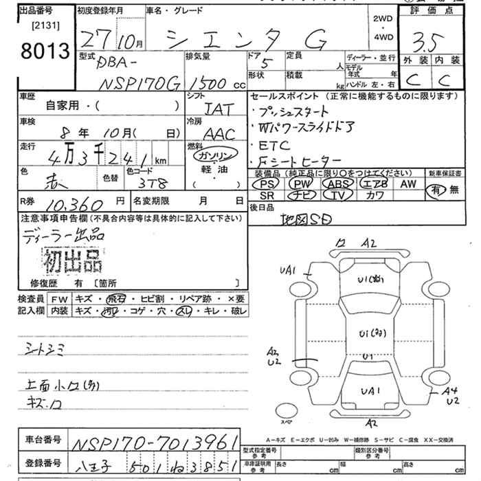 TOYOTA SIENTA G - лот 8013