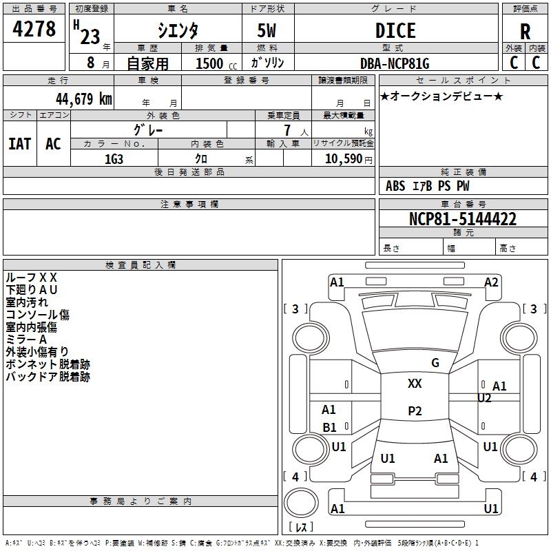 TOYOTA SIENTA DICE - лот 4278