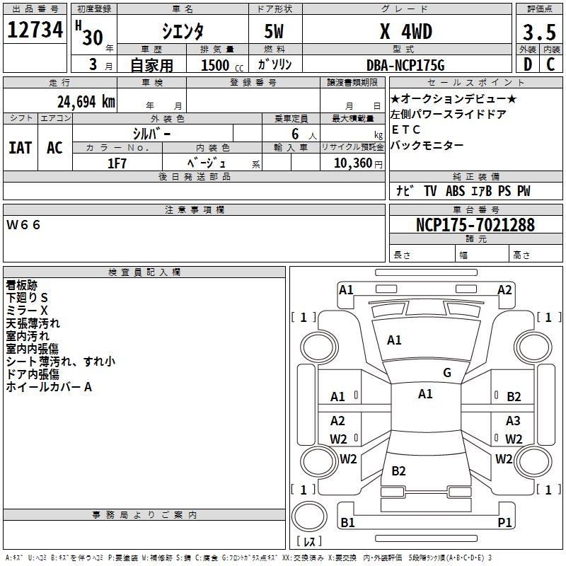 TOYOTA SIENTA X 4WD - лот 12734