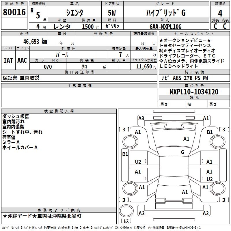 TOYOTA SIENTA HYBRID G - лот 80016