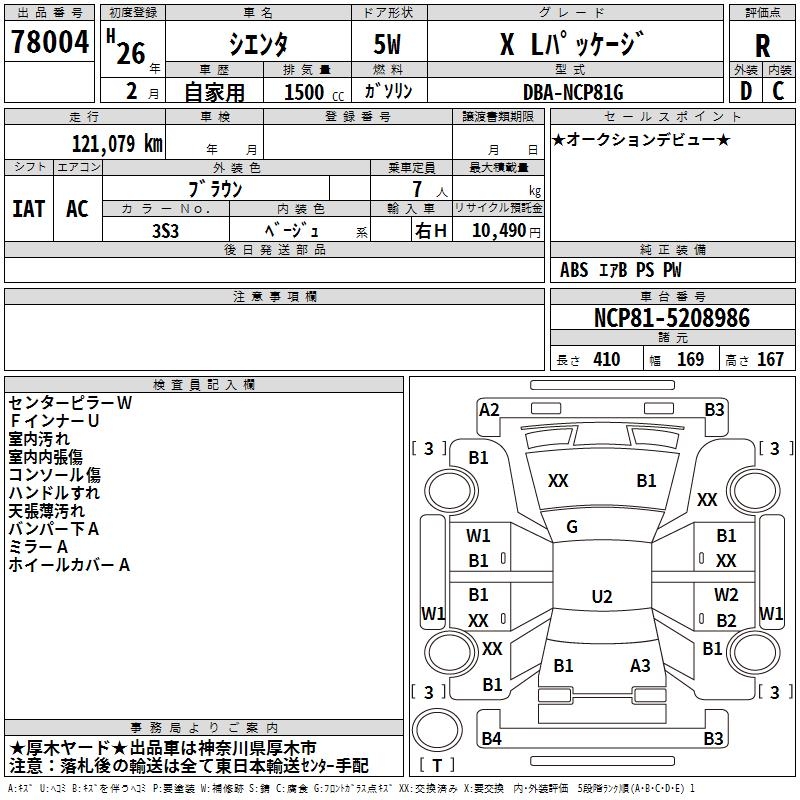 TOYOTA SIENTA X L PACKAGE - лот 78004